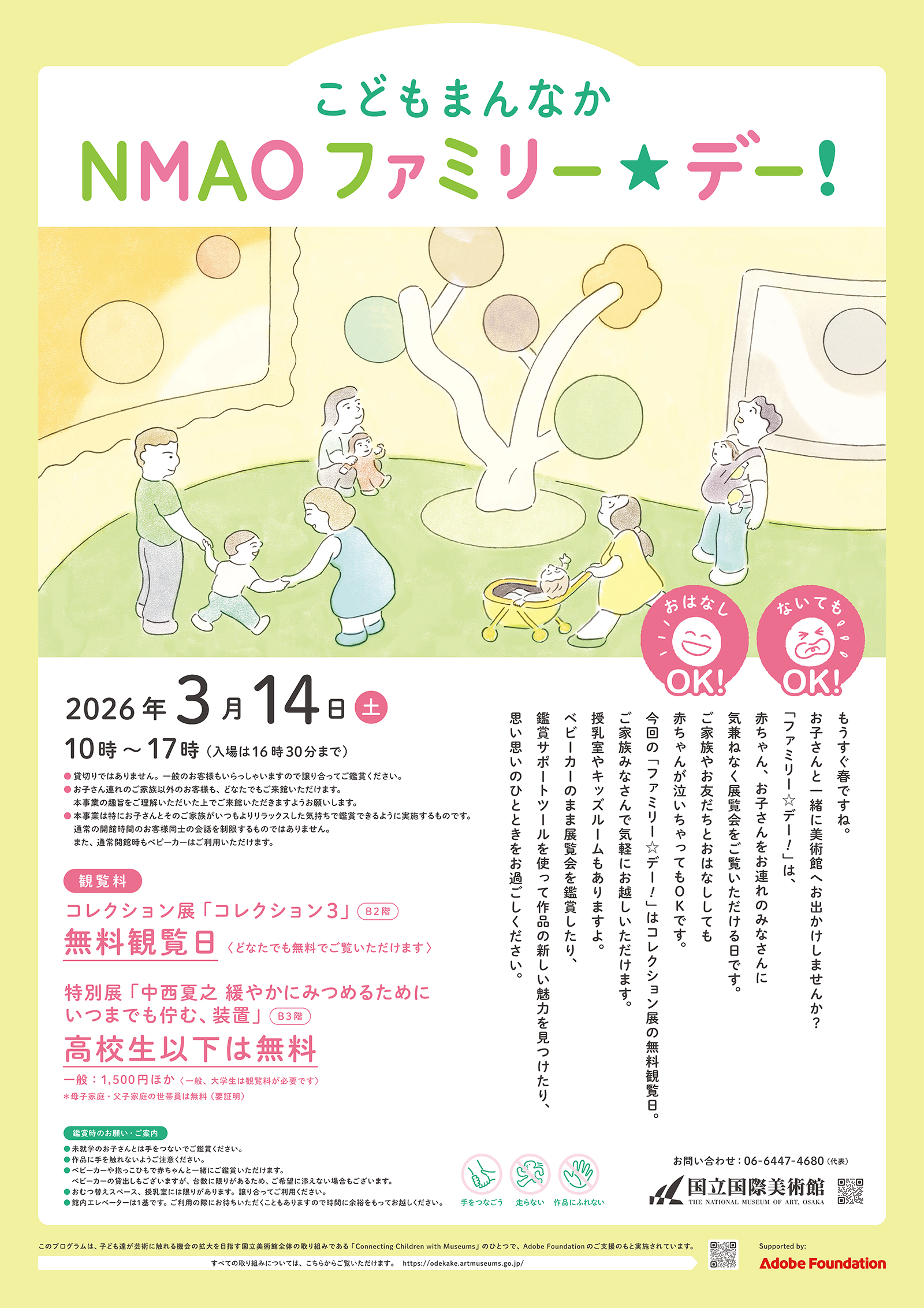 「ファミリー☆デー!」は、赤ちゃん、お子さんをお連れのみなさんに気兼ねなく展覧会をご覧いただける日です。